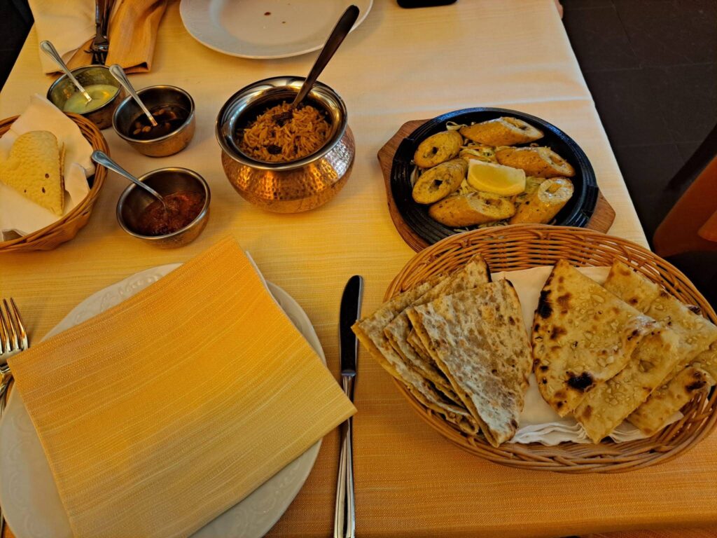 Il ristorante vi offre l’opportunità di assaporare l’eccellenza della cucina indiana, avvolti in un’atmosfera accogliente e raffinata dalle tonalità calde e vivaci, il tutto arricchita da suggestiva musica indiana di sottofondo.
